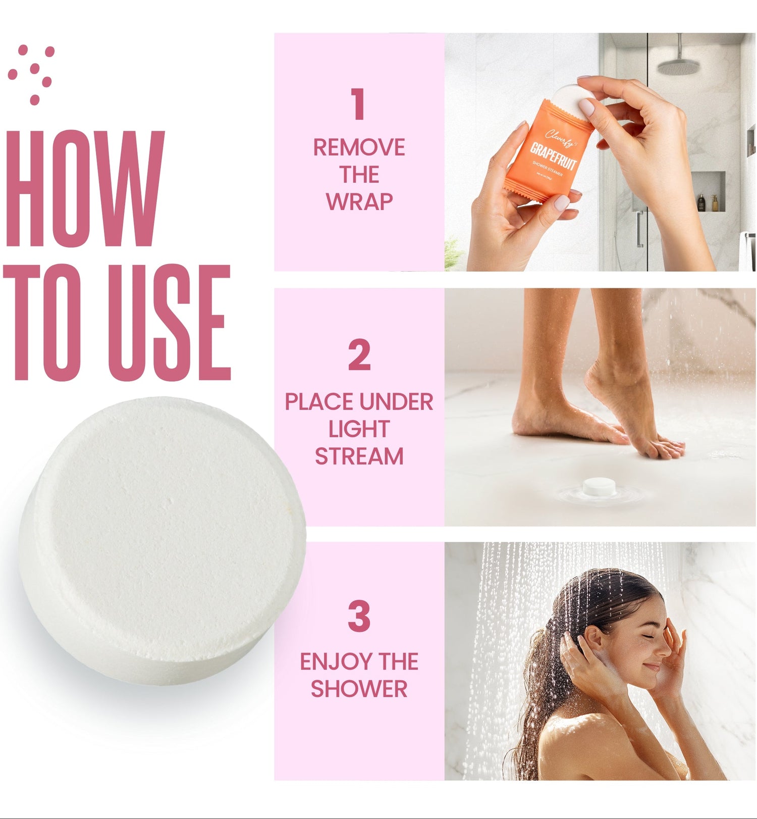2️⃣ Place the tablet on your shower floor and turn on the water stream